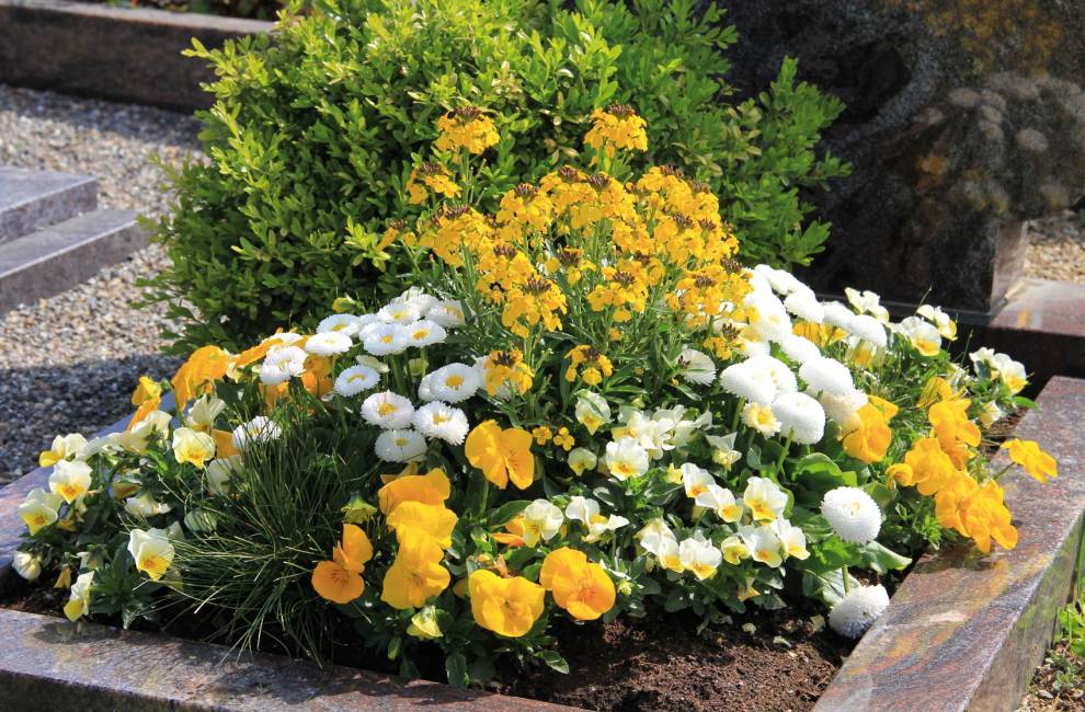Wir bieten saisonale Anpflanzungen in unterschiedlichen Preisklassen an. Die Pflanzung richtet sich oftmals nach dem Standort, der Form- und Farbvorgabe durch das Grabmal oder den Wünschen des Auftraggebers. Anhand der Mustergräber zeigen wir Ihnen die verschiedenen Pflanzenkombinationen.