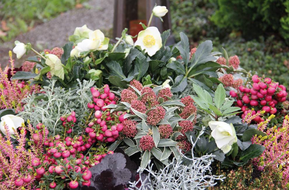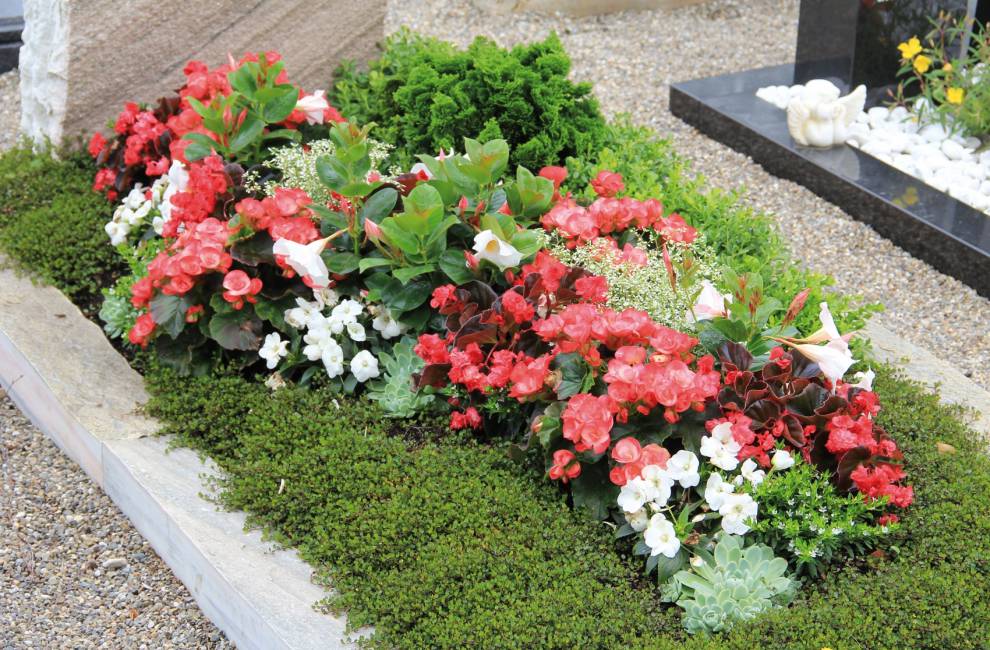 Wir bieten saisonale Anpflanzungen in unterschiedlichen Preisklassen an. Die Pflanzung richtet sich oftmals nach dem Standort, der Form- und Farbvorgabe durch das Grabmal oder den Wünschen des Auftraggebers. Anhand der Mustergräber zeigen wir Ihnen die verschiedenen Pflanzenkombinationen.